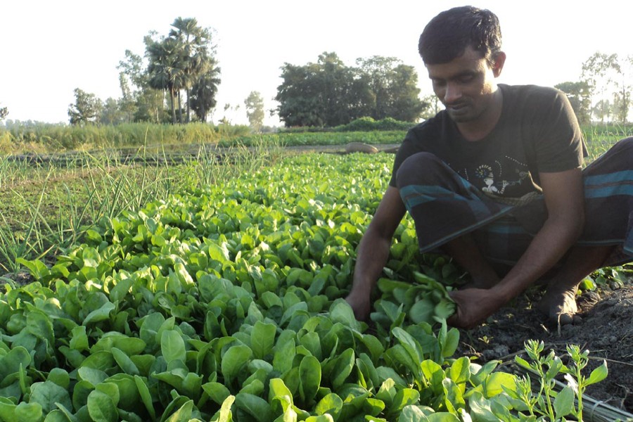 "I have brought around 0.23 acre of land under spinach cultivation spending Tk 4,000," said farmer Anukul Chadra Barmon of Kahaloo upazila.