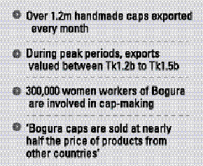 Exporters say Bogura now ships about 18 varieties of caps worth more than Tk1.0 billion annually.