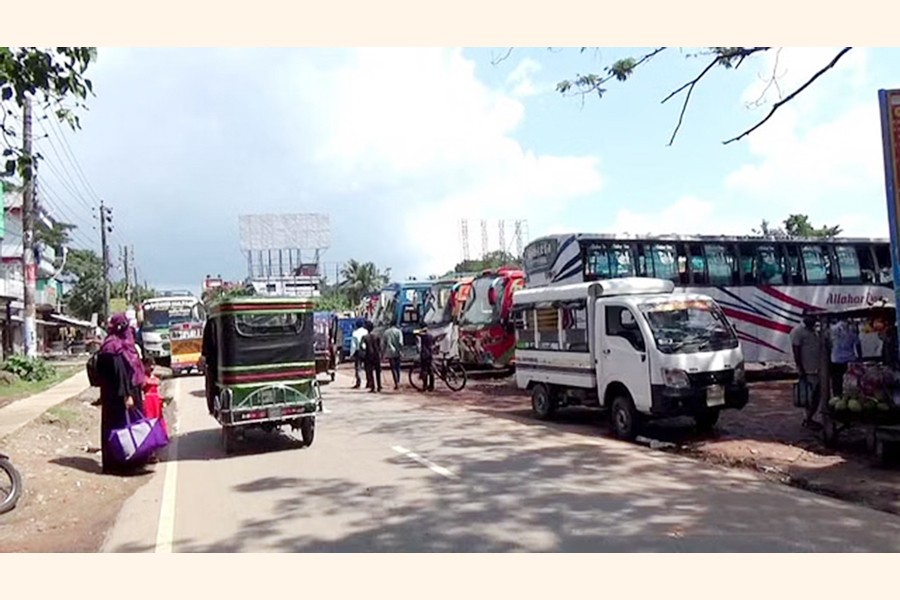 Commuters suffer immensely due to a transport strike enforced by Jhalakathi Inter-district Bus and Minibus Workers Union in the district on Wednesday, protesting assault of workers and demanding security of their life — bdnews24.com