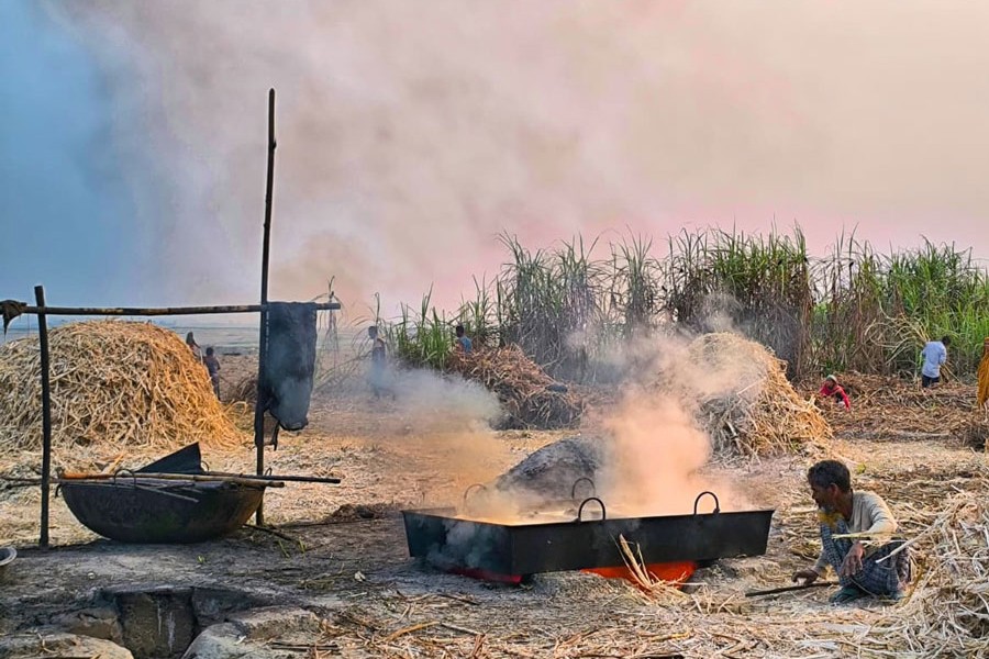 GAIBANDHA, Feb 11: Farmers have been traditionally producing pure sugarcane jaggery along the Jamuna River in Gaibandha district and customers arriving from far and wide say they are satisfied with their purchase of the natural sweetener made right in front of them.