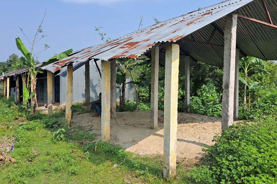 Several houses lacking tin-shed, or windows, remain locked for a long time. In 2017, the houses were distributed free of cost as part of the project implemented at a cost of Tk 60 million. In addition to the houses, 31 tubewells, installed to ensure access to safe drinking water, were also stolen. The objectives of the project were to distribute government land among the landless and support their productive activities through training and providing low-interest loans for socio-economic development.