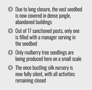 Acting Farm Manager of Ishwardi Silk Nursery Md. Khokon Ali told The Financial Express, "Out of 17 posts in the Ishwardi Silk Seedbed, I am the only one who is working in one post.