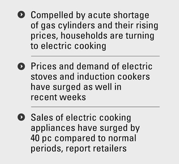 With LPG cylinder supplies shrinking sharply and prices climbing beyond the reach of many, prices and demand of electric stoves and induction cookers have surged as well in recent weeks.
