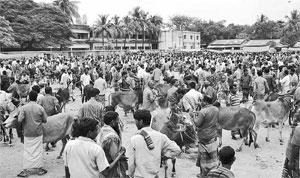 Photo: BOGRA: Sacrificial animals have already started appearing in Mahasthan market