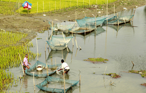 Photo: MANIKGANJ: Fishermen cultivating fish fry