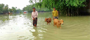 NILPHAMARI: Nearly whole of west Baishpukur village has gone under water following a spate in the river Teesta. — Focus Bangla
