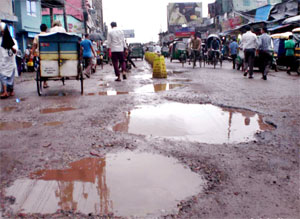 Photo: NOAKHALI: A partial view of Noakhali-Feni road in a miserable