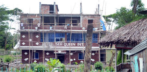 PATUAKHALI: Despite a court embargo on construction of building in the coastal areas of Kuakata beach, work on a hotel building goes on in defiance of the order. — Focus Bangla