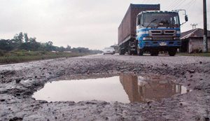 Photo: SITAKUNDA: A deep, wide pothole right in the middle of Dhaka - Chittagong highway