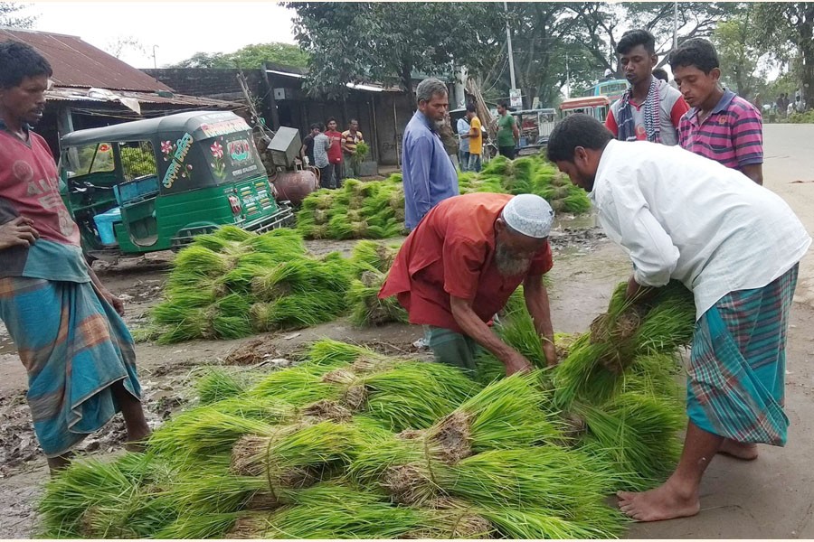 Traders busy selling Aman paddy saplings at a village market in Brahmanbaria district — Focus Bangla