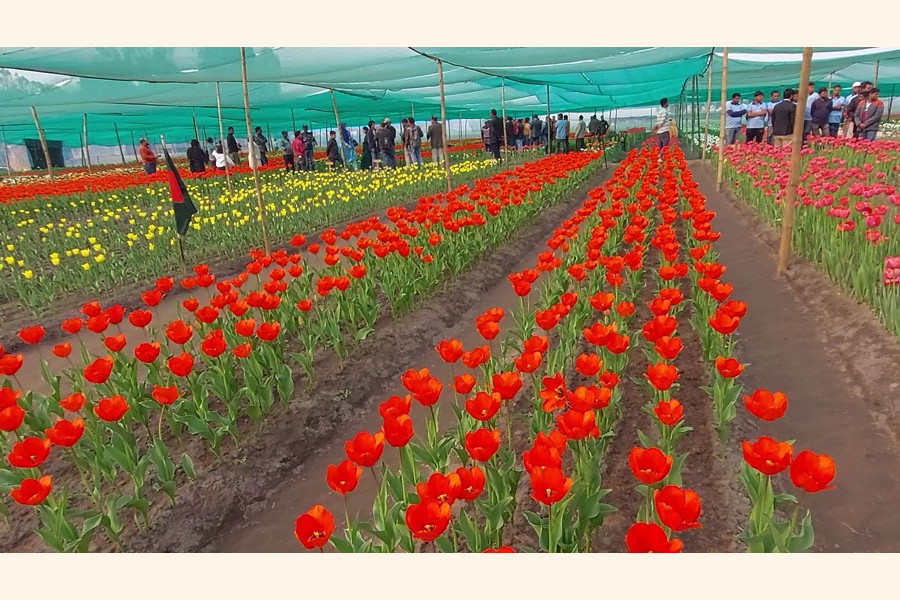 PANCHAGARH, Feb 16 (UNB): Tulips - the brightly coloured flowers usually associated with the Netherlands - are now growing in Tetulia upazila of Panchagarh district, boosting tourism prospects and local economy.