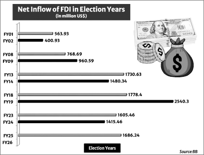 Nevertheless, comparisons between calendar and fiscal years can sometimes create confusion. This article focuses on the fiscal year to examine the impact of the election on FDI and finds that a decline in FDI in an election year is normal, while a rise is an exception. Foreign investors generally follow a wait-and-see policy to monitor election-centric political developments and the early moves of the newly elected government. The existing multinational entities (MNEs) continue their regular operations without injecting fresh capital or expanding their commercial activities. FDI may rebound in the next fiscal year provided that the newly elected government ensures socio-political stability in the post-election period.