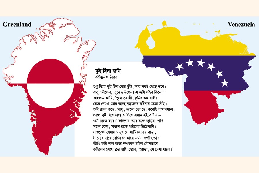 In a modern version of the Dui Bigha Jomi, Venezuela and Greenland serve as the right counterparts with the only difference that those, unlike Upen's land, are located in two continents. Donald Trump of America has already captured Venezuela and taken its President Nicolas Maduro and his wife hostage on the ruse of the Latin American president's involvement in contraband drug smuggling. Independent sources view this as a false charge against Maduro. His implication echoes the made-up charge of indebtedness against Upen. Even if Maduro was at fault, what about his wife? It is a clear case of a foreign state-sponsored kidnapping of the Venezuelan first lady. Now self-proclaimed peace broker Trump has set his eyes on Greenland for annexation. The government of Denmark, a member of the North Atlantic Treaty Organisation (NATO), has been angered by Trump's repeated claim that the US needs the autonomous and the largest of the country's constituent parts for security reasons.