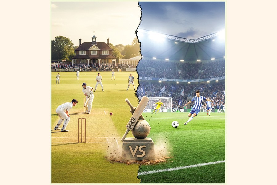 Two international games that dominate our sports arena are Cricket and Football. But the fanfare that surrounds the game of Cricket is mute in Football. No wonder we are at the bottom of the global league of table for Football. Yet it is Football that should have been our priority. Cricket is expensive and town centric. The popularity of the game in the country is due to the influence of town-based elites who dominate the sports arena of the country. Reasons given against performance in Football are many including physical limitations. But the leaders in global Football are not very different from us such as Brazil and Mexico. A Bengali can be easily mistaken for a Mexican in the suburbs of LA. And then, many global stars in Football have risen from the Favellas in Brazil. If they can do it there is no reason why this cannot be done here. It is unfortunate that we have not been able to create a 'fiz' factor in the game of Football though there have been occasional sparks in the past. It is lack of focus rather than lack of ability that seems to matter. To think of ability, consider the days of pre-independence cricket when we hardly had a player in the national team except in consolation positions of extras. Yet we have risen. It is attention and allocation that makes the difference. It is time to take a fresh look at the disparity in attention a la resources allocated between the two games. Our natural game is Football, not Cricket.