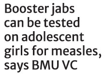 It can be examined whether booster dose responds properly if it is applied to adolescent girls to prevent measles, said Bangladesh Medical University (BMU) Vice Chancellor Prof Dr FM Siddiqui said on Sunday.