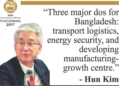 The top official of ADB's South Asia Department said they see three major dos for Bangladesh: transport logistics as Bangladesh is becoming a regional hub in the sense, energy security, and developing manufacturing-growth centre.