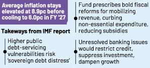 The International Monetary Fund (IMF) has come up with such observations after a protracted spot assessment by its staff mission, and prescribed a slew of macro-level dos to avert looming financial and fiscal risks, including "sovereign debt distress".
