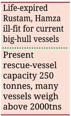 These vessels have the maximum part to pick up 250-tonne sinking vessels only, but presently there are many passenger vessels having the weight of 700 to 1000 tonnes or more running in different places, especially on the Dhaka- Barisal route, they said.