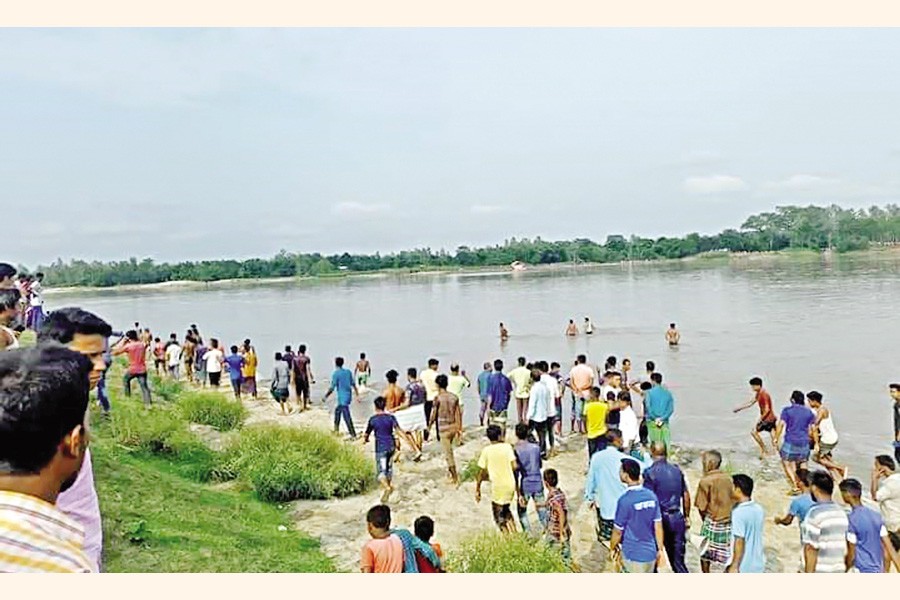 The rescue operation is going on as a trawler filled with Hindu pilgrims capsized in the Karatoa river in Boda upazila of Panchagarh on Sunday, leaving at least 24 people, including children, dead. At least 10 passengers of the vessel were still missing — Focus Bangla