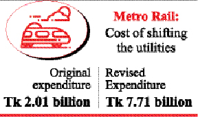 Sources said lack of coordination among agencies concerned and deviation from original work plan have led to the rise in expenditure on utility service lines' relocation. The original estimated expenditure was Tk 2.01 billion.