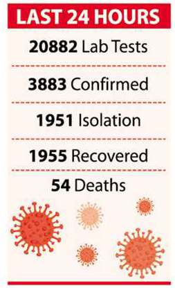 Meanwhile, 54 more people died of coronavirus in the last 24 hours across the country. With the latest daily counts, total fatalities from coronavirus stood at 13,399 since the virus was first detected in the country in March 2020, said a DGHS press release.