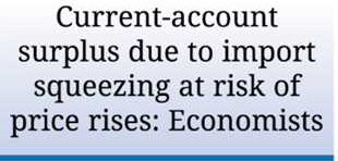 Bangladesh's current account showed surplus for the first two months of this fiscal economists believe largely for import squeeze amid dollar death, but BoP takes pressures for lower forex inflows.