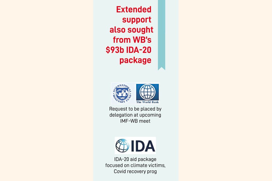 Besides, an extended support may also be requested from WB's $93 billion three-year IDA-20 package, to be implemented during the fiscal year (FY) 2022-23 to FY2025, officials said Friday.