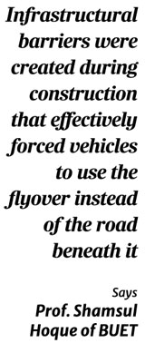Additional Commissioner (Administration) of Dhaka Metropolitan Police Md Sarwar says coordinated action by all relevant agencies is needed. "Despite sincere efforts by the police, it is often difficult to keep the flyover congestion-free," he says.