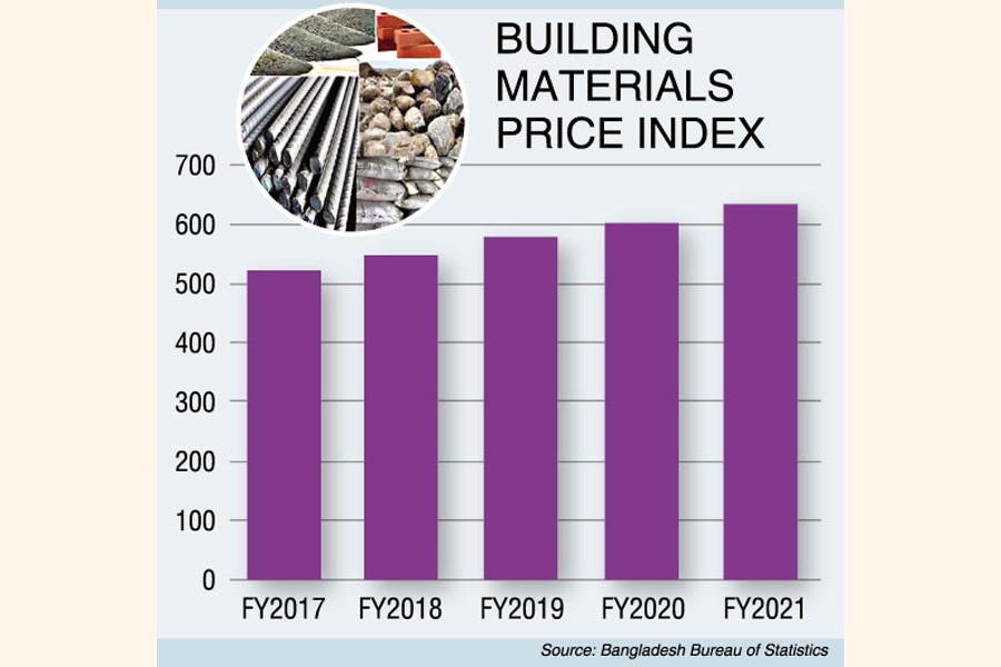 Bangladesh Bureau of Statistics (BBS)'s recent survey shows that the Building Material Price Index (BMPI) has shot up 96.02 per cent in last 10 years.