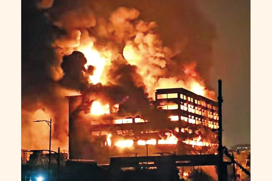 CHATTOGRAM, Oct 16: A fierce fire burnt down a multi-storey apparel-factory building in the Chittagong Export Processing Zone (CEPZ) Thursday, barely two days after a tragic garment blaze in Dhaka.