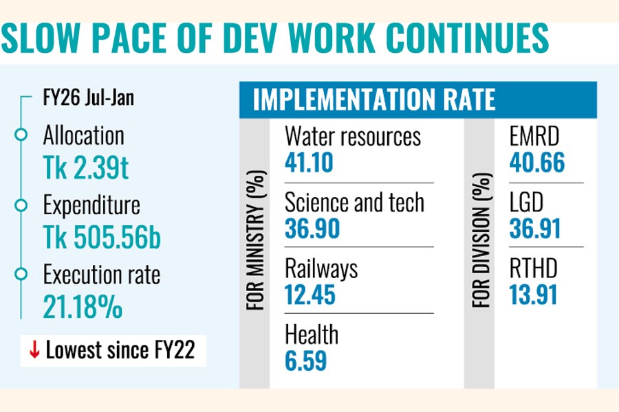 They say the ADP execution rate during the first seven months of FY26 slowed to a five-year low, with government agencies utilising only 21.18 per cent of the allocation.