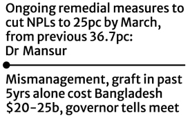The Bangladesh Bank Governor also said ongoing restructuring and provisioning measures are expected to bring down non-performing loans in the banking system to around 25 per cent of total loans by next March.