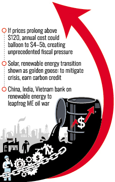 Bangladesh faces a looming economic challenge stemming from global oil price crossing a critical threshold of US$120 per barrel amid the escalating Mideast tensions, with an extra burden on its cautiously tailored budget.