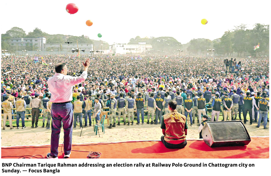 In the second leg of his electioneering outside the capital Tarique Rahman arrived in the port city on the day.