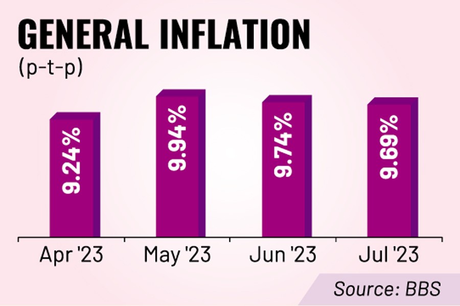 In June last, inflation was also the same at 9.7 per cent, Bangladesh Bureau of Statistics (BBS) data show.