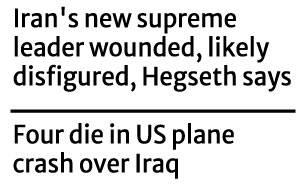 SHINGTON, March 13 (Reuters): Iran's new Supreme Leader Mojtaba Khamenei is wounded likely disfigured, U.S. Defense Secretary Pete Hegseth said on Friday, questioning Khamenei's ability to govern after nearly two weeks of U.S. and Israeli attacks on Iran.