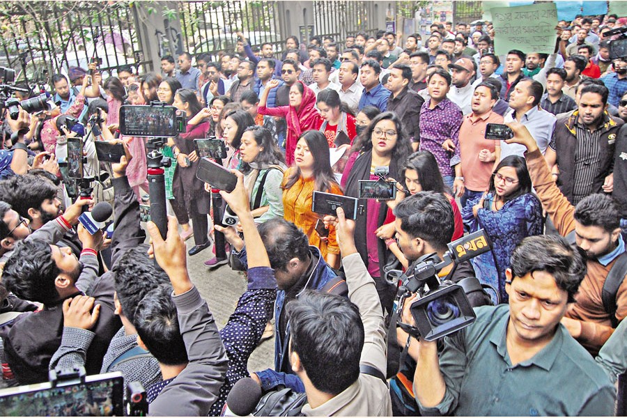 On Sunday, students of Dhaka University (DU), led by Jatiyatabadi Chhatra Dal (JCD), staged a protest rally against the controversial post.