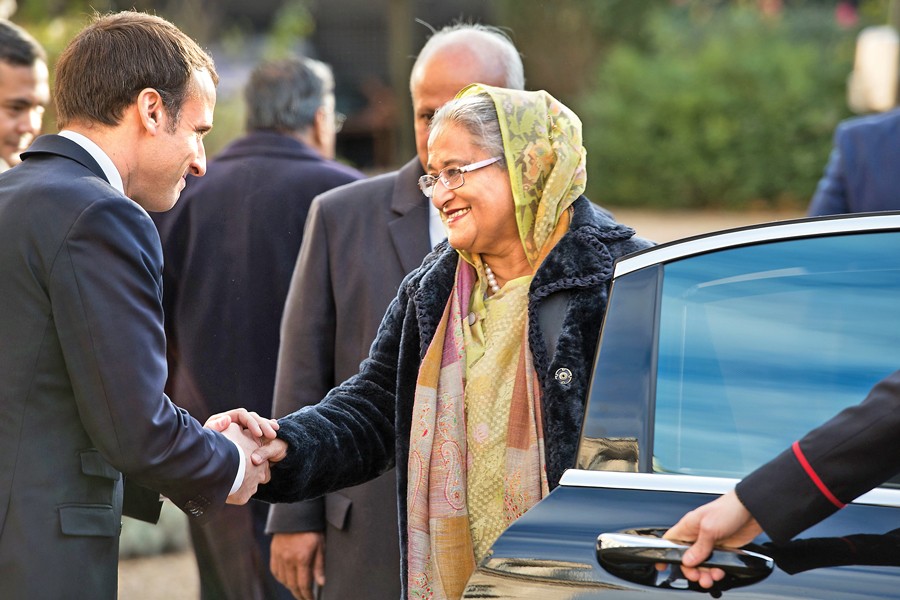 "People of Bangladesh have a very enthusiasm and warmth about your leadership," the Bangladesh premier told the French President.