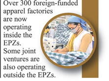 Over 300 foreign-funded apparel factories are now operating inside the EPZs. Some joint ventures are also operating outside the EPZs.