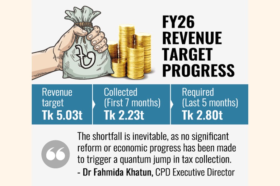 Dr Fahmida Khatun, executive director of the Centre for Policy Dialogue (CPD), said the shortfall is inevitable, as no significant reform or economic progress has been made to trigger a quantum jump in tax collection.