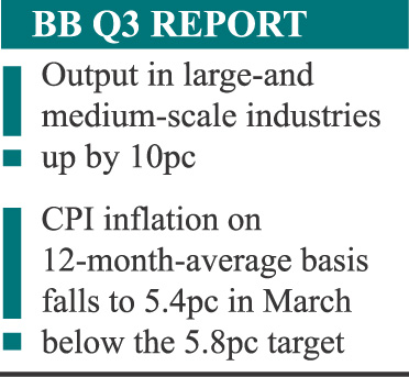 The industry sector benefited from domestic demand, with output in the large-and medium-scale industries growing by 10 per cent in the Q3 of FY 17.