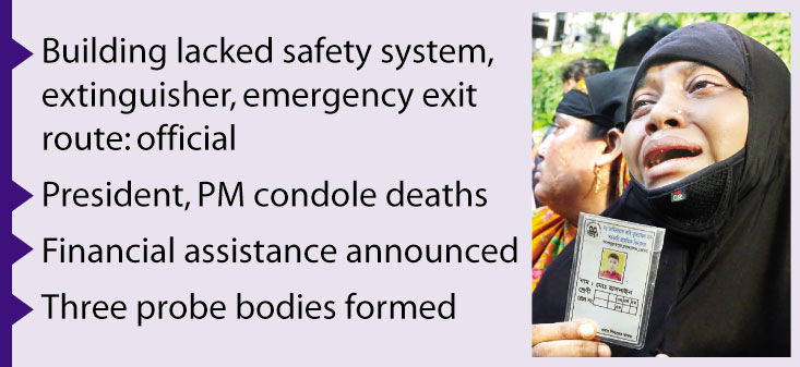 Meanwhile, President Abdul Hamid and Prime Minister Sheikh Hasina on Friday expressed deep shock and sorrow at the loss of lives and belongings in a factory fire at Rupganj in Narayanganj.