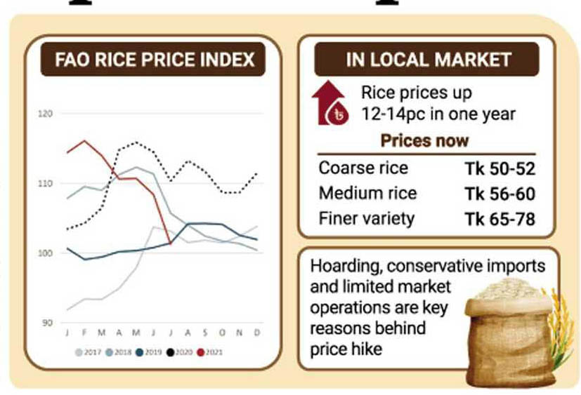 Prof Abdul Hamid, chairman of Bangladesh Agrarian Research Foundation (ARF), said the rice is pricier in Bangladesh due to considerably higher production costs, big players' influence on market, import hurdles and inadequate market intervention by the government.