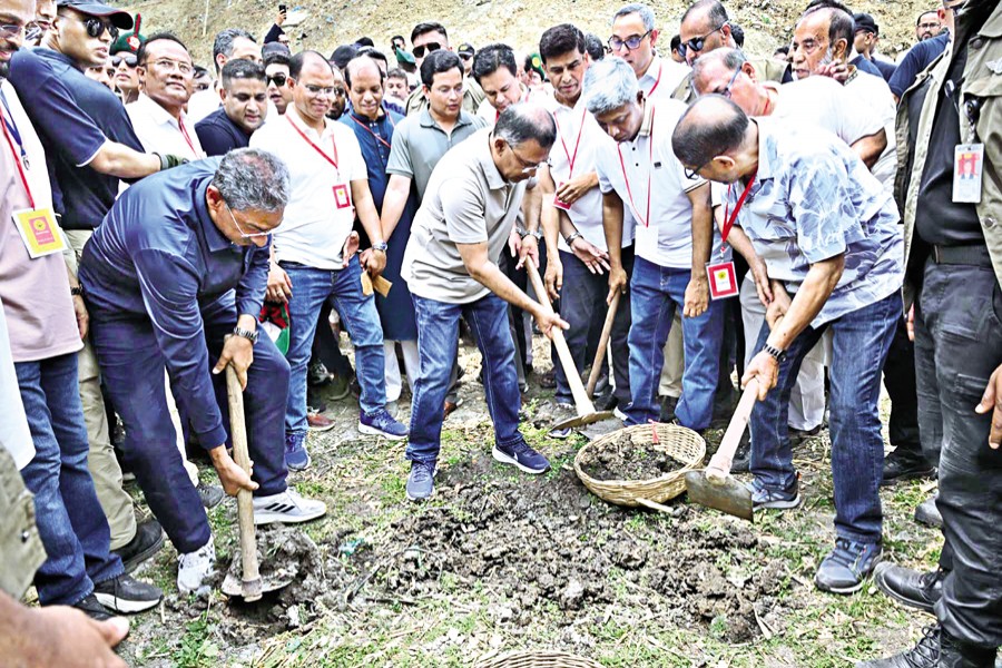 Prime Minister Tarique Rahman takes part in digging soil while inaugurating the re-excavation programme of the Ulasi Canal (Jiyar Canal) in Sharsha upazila of Jashore on Monday. — PID Story on Page 1 Stating that some quarters are out to create chaos, Prime Minister Tarique Rahman Monday said it would not be possible to hold back the country's people by scaremongering.