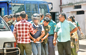 SI Jahidur Rahman was produced before the court of Metropolitan Magistrate Thursday in connection with the murder of trader Mahbubur Rahman Sujon. — Focus Bangla