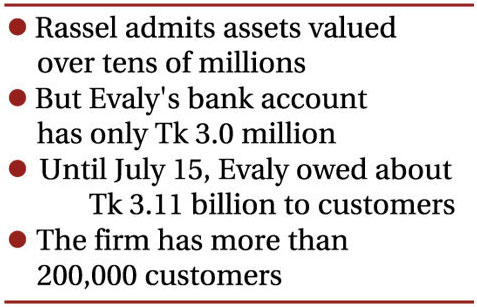 Mr Rassel acknowledged assets valued over several crore taka, whereas Evaly's bank account got only Tk 3.0 million, he told the media.