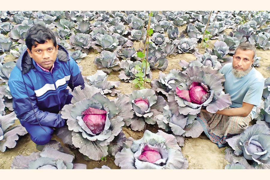 Alongside white cabbage, red cabbage is being cultivated in different parts of the country nowadays. Farmer Md Sahidullah of Tantkura village in Gouripur, Mymensingh, has made a handsome profit by cultivating this vegetable for the first time, which also inspired other farmers in his area. The photo was taken on Friday — Focus Bangla