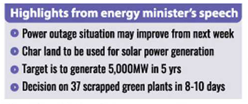 Regarding the demand for restoring approval for the 37 renewable energy-based power plants, the minister said he had already asked the ministry to inform him of the reasons behind the cancellations.