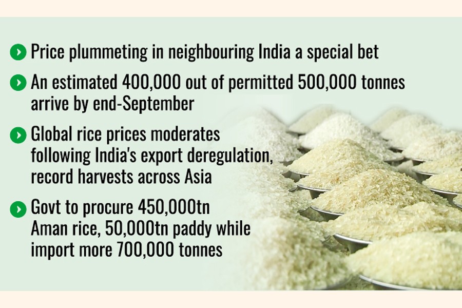 The food department is targeting domestic procurement of 450,000 tonnes of rice and 50,000 tonnes of paddy during the Aman season, and plans to import a further 700,000 tonnes on government account to bolster public stocks.