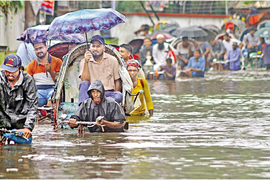 Several parts of port city Chattogram, including low-lying areas, go under water following heavy rainfall. The photo was captured on Sunday from the Shantibagh area of Halishahar. — Photo: Collected